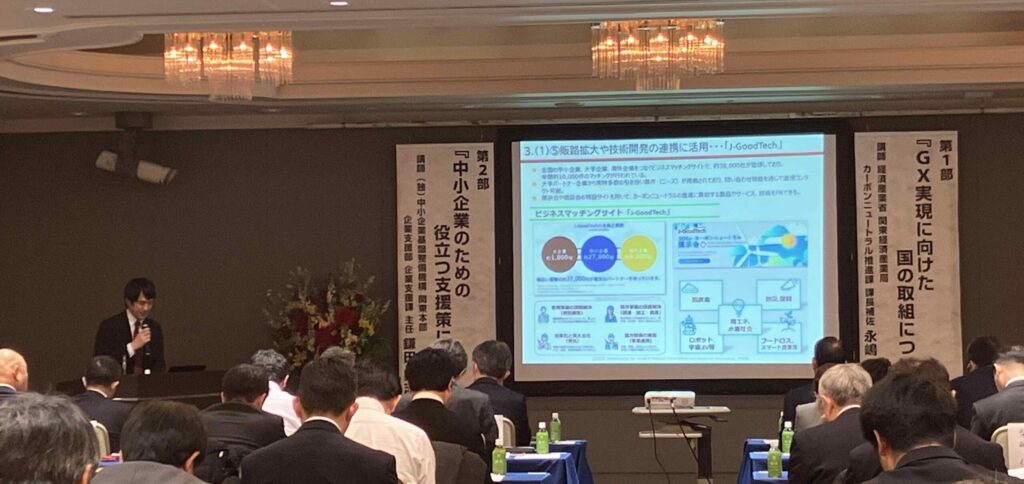 省エネセミナーでは、中小企業に対する公的支援策や採用事例などが紹介され、参加者の皆さまが熱心に耳を傾けておりました。